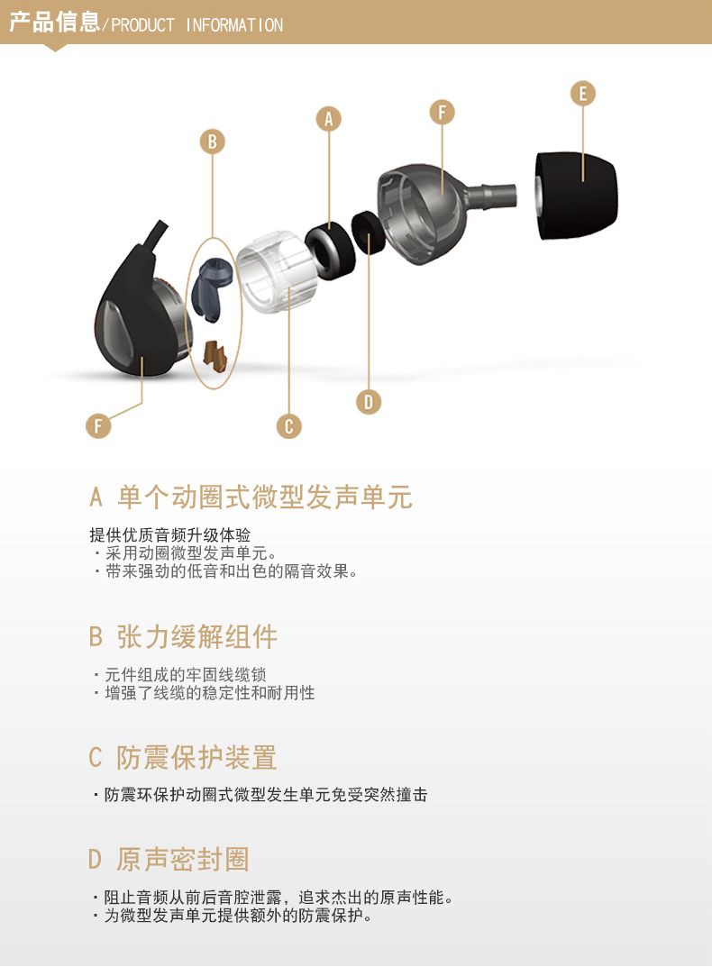 SE112采用动圈微型发声单元,为现有便携式数码设备提供完美音频升级体验,带来强劲的低音和一流的隔音效果。
